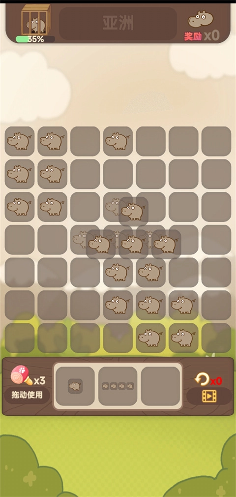 比如在动物消除小游戏里,把下方的动物拖拽到空白格子中,就能达成整行或者整列的消除效果;