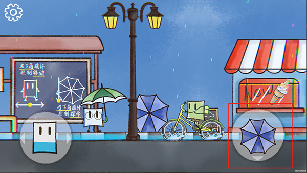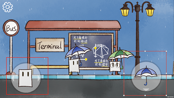 1、左下角摇杆控制移动,右下角摇杆控制雨伞。