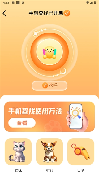 你可以挑选一种自己喜欢的玩法点击进入,像找手机这个玩法,点击它就能开启查找手机功能。