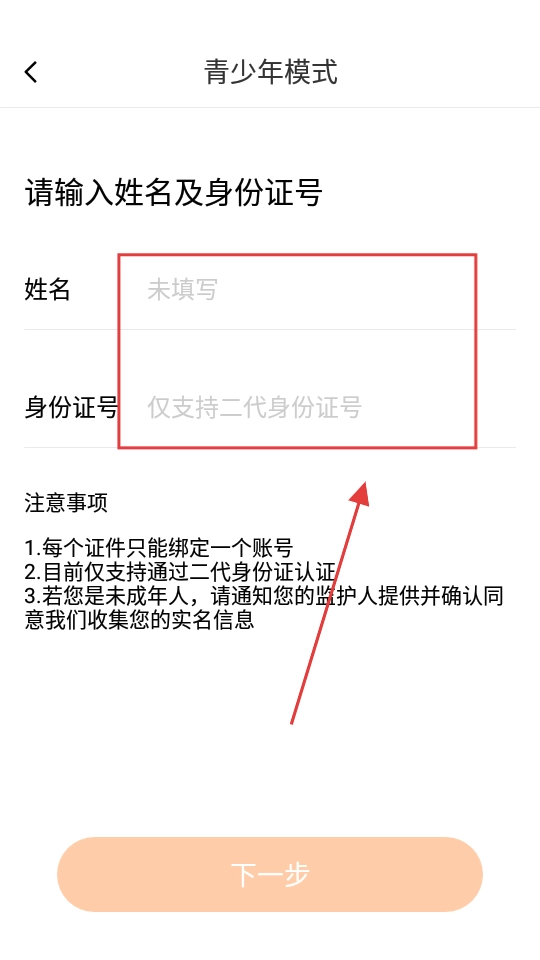 点击【开启青少年模式】,进入信息填写页面。