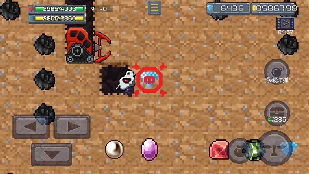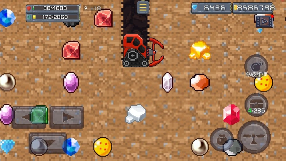 左右下,分别是控制矿车前后左右移动的按键,而下则是可以开采地表下面更多的宝藏资源;