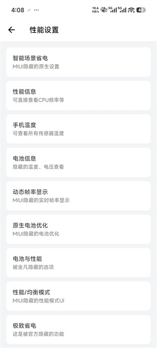 关于原生内存信息以及各类原生省电模式,都能够便捷地开启。