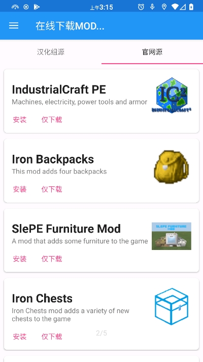 3、选择你想要使用的模组列表下载到手机中即可导入模组到游戏内使用。