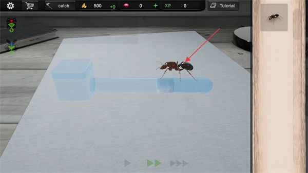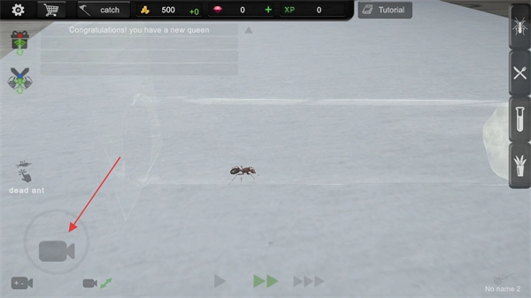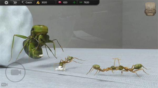通过左下角的摄像头轮盘来操控摄像设备,完成对蚂蚁活动的拍摄记录。