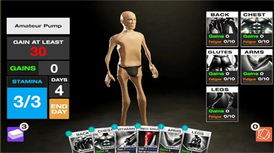 玩家每日都会抽取一组训练卡,这些卡片对应着各式各样的锻炼方法,能够用来锻炼不同部位的肌肉群。