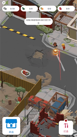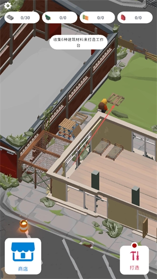 按照提示,收集六种建筑材料用于制作工作台,可前往车辆、建筑废墟等不同区域采集资源,以此获取所需的材料。