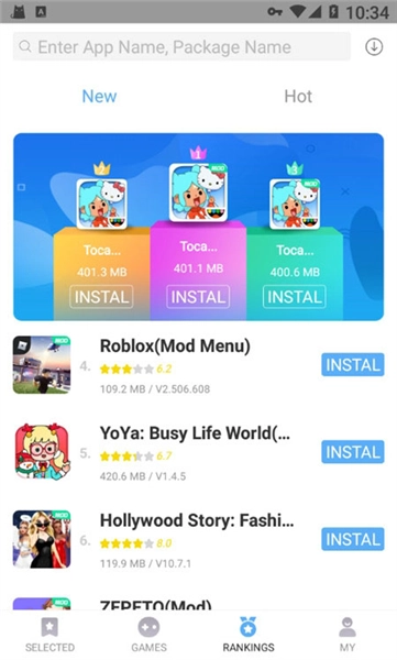 2、在排行榜界面设有三大榜单,玩家可点击任意一款游戏进入其详情界面。