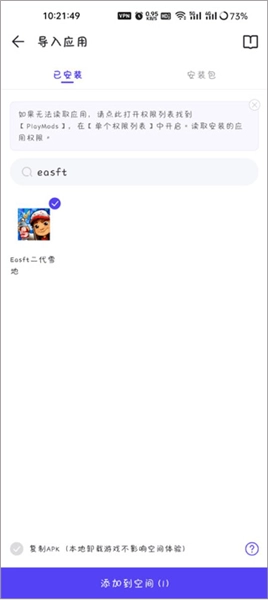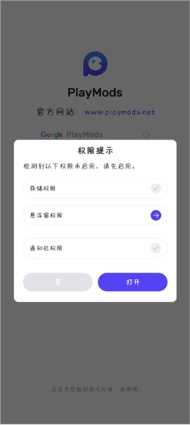 3、成功导入游戏后可以直接在Playmods中国版中打开游戏,并且可以使用悬浮窗菜单功能,但要注意需要打开应用权限。