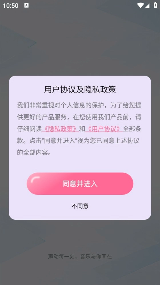 1、首先在本站安装好唱歌k歌吧应用,然后查看并同意隐私政策与用户协议。