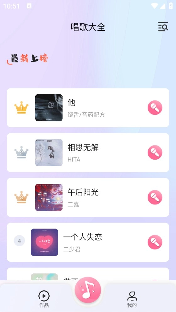 1、集结各类风格的音乐作品,优质的K歌曲目均可免费获取