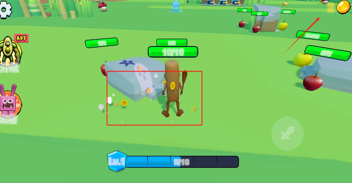 打烂雪梨会爆出金币,金币可以兑换东西。