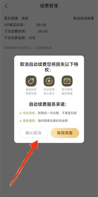5、在续费管理里,点击“取消自动续费”。