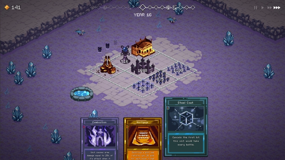 丰富策略玩法:融合传统SLG模式与Roguelike随机元素,每次开局都能解锁不同的发展路线。玩家需要同时统筹管理三个王国的运营与发展。