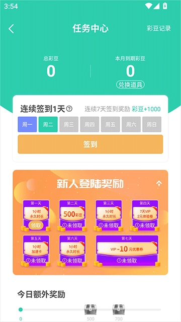 5、如果不想充值会员的话,在任务中心,通过完成每日任务获取时长卡等奖励