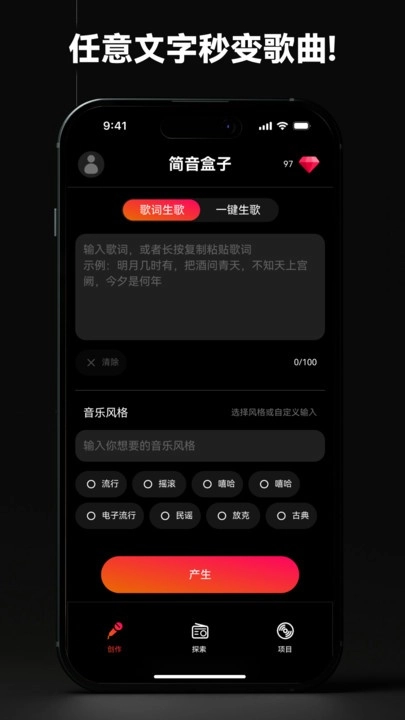 激发创作灵感:提供海量风格选项与热门歌曲一键生成同款的功能,有助于点燃用户的创作火花,让创作者能够紧密追随音乐潮流。