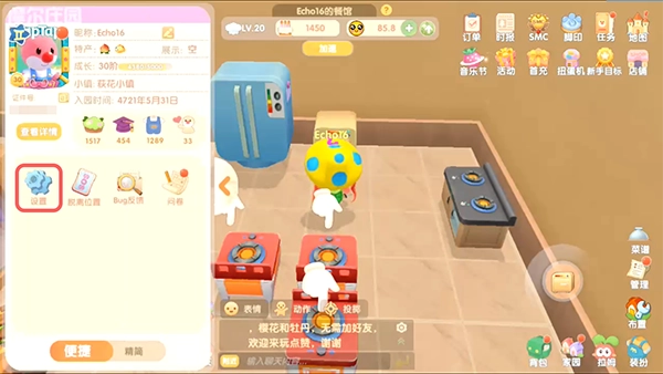 :游戏的画面风格温馨可爱,音乐轻松欢快,玩法简单易上手,非常适合儿童和青少年玩家。游戏中点击左上角【头像】。