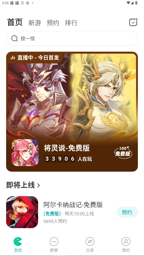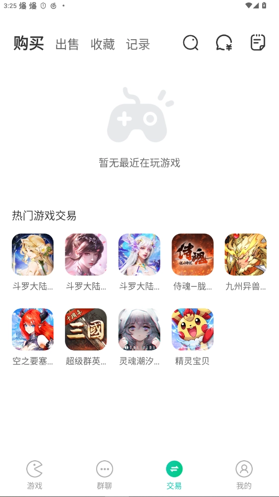 首先打开小7游戏盒,能看到界面下方设有游戏、群聊、回收、交易这些功能标识。