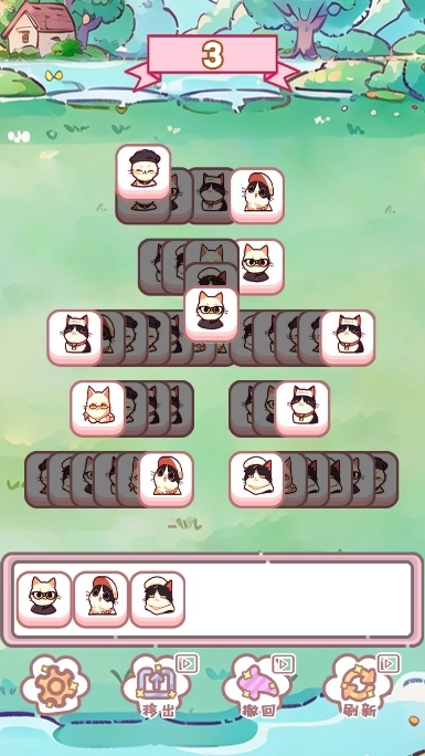 游戏玩法:采用经典的三消机制,玩家只需点击三个或更多相同的猫咪图案即可进行消除。操作简单易懂,轻松上手,是闲暇时光的好伴侣。