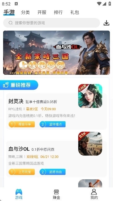 5.还能在各个列表中查看近期上线的新游服务器,找到感兴趣的目标;