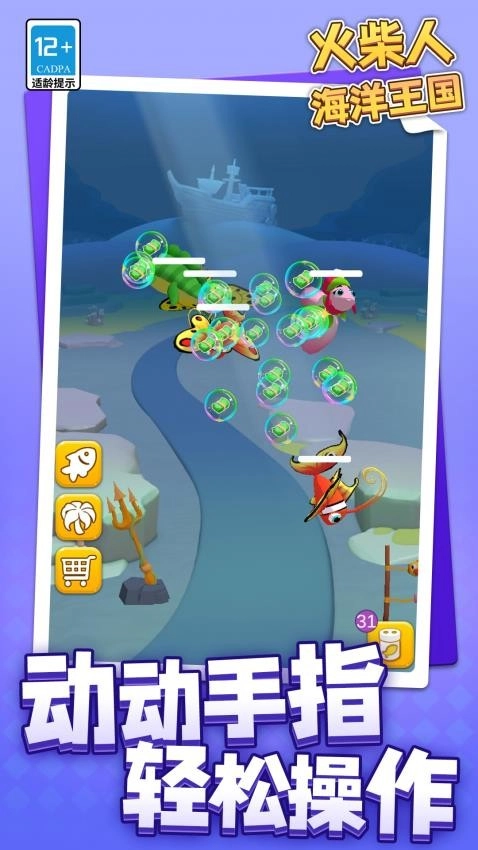 《火柴人海洋王国》邀你开启一场奇妙的海底冒险!潜入神秘的水底世界,自由探索每一处角落,收集沿途邂逅的各种海洋生物。你需要亲手参与海洋王国的建设,悉心照料这些探索中发现的海洋朋友们——记得仔细核对它们的专属食谱,才能让它们健康成长哦!通过点击操作完成家园里的各项任务,就能积累分数,兑换更多实用物品。快来加入,成为这些可爱海洋生物的专属守护者吧!