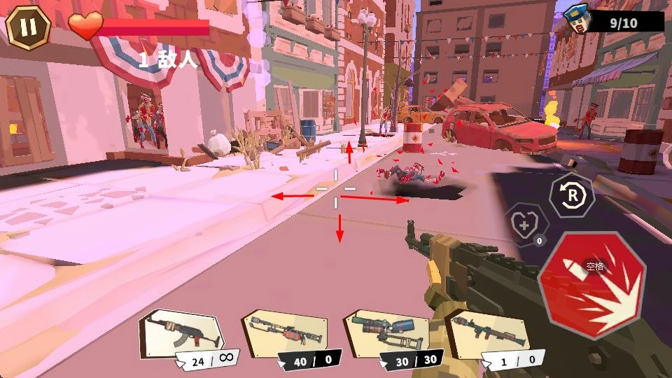 瞄准射击消灭僵尸:操控武器对准出现的僵尸射击,依据僵尸的数量和位置来调整攻击节奏,优先解决威胁较大的目标,借助精准射击迅速清理战场上的僵尸,降低自身遭受攻击的风险。