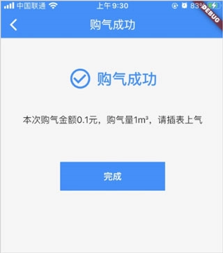 8、购气成功后,购气界面会显示成功提示,此时您只需将燃气卡插入燃气表中,完成写表操作就可以了。