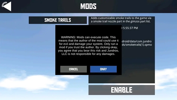7、再次进入游戏,点击mods选项,选择第一个选项后点击okay。