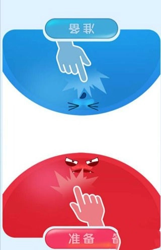 2、初次游玩的项目是“顶翻小胖子”,按照白色指尖的指引,快速点击我方的圆胖球,将对方的圆胖球顶出屏幕边缘外,就能获得首次胜利;点击开始按钮进入游戏区域。