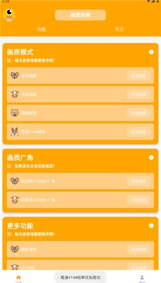 2、点击想要修改的模式,待显示操作成功后打开游戏,接着就能进入设置界面选择画质了。