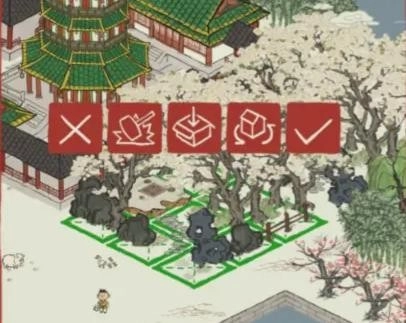 1、长按建筑可进入改布局模式,点击建筑后会出现五个功能符号,分别对应取消、拆除建筑、放进仓库、旋转和完成操作(需注意部分建筑不支持放进仓库);此外,点击应天府印的改布局选项也能进入该模式。