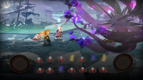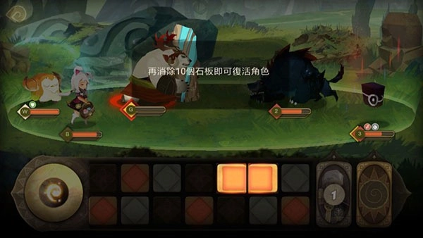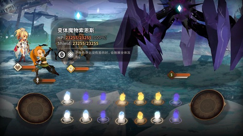 由于游戏采用回合制策略,消除可以使得对应职业的角色发动攻击,单消/2消/4消则对应该角色攻击的不同技能;消除后将会由右侧填补方块,敌方cd将减少1回合,cd为0则敌方进行行动并且重置敌方行动cd。