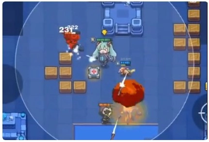 4、接着通过左边屏幕进行控制人物移动,右边攻击键进行射击皆可
