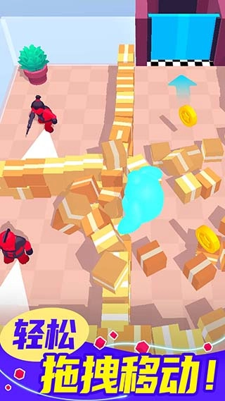 2、操控互动后的物品向出口方向移动,利用物品遮挡敌人视野,为角色推进创造安全空间。