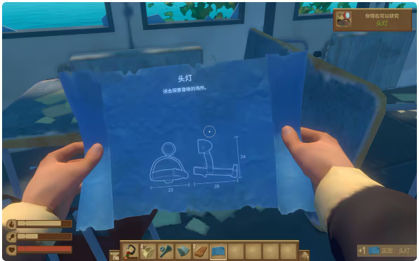 C1房间桌子上有头灯图纸,邮轮要用