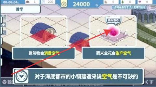 请注意教学提示中的内容:建筑物会消耗空气,米兰花则能产生空气,因此需要合理规划建筑布局,以保障都市的正常运转。