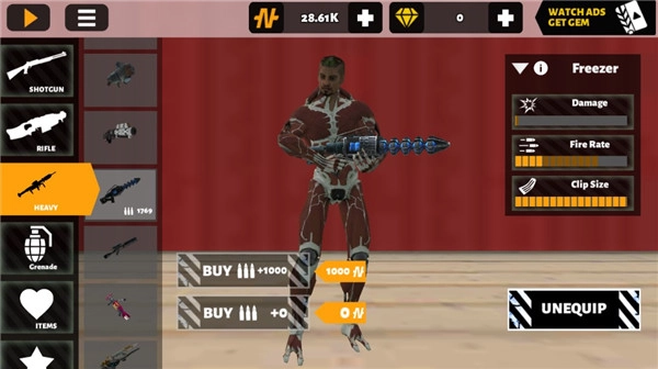 商店里陈列着各式各样的武器与道具,大家能够自由切换查看,挑选出心仪的武器进行购买就可以了。