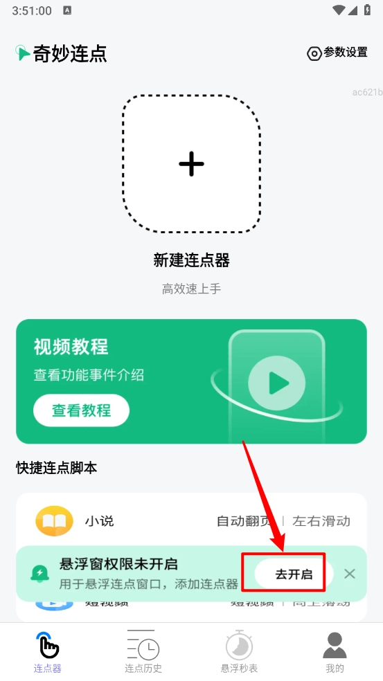 如图所示,打开奇妙连点的悬浮窗开关即可。