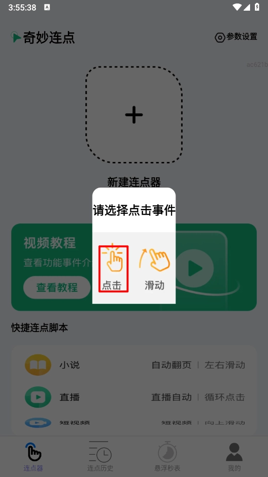 然后在主页点击"+"号新建连点器,选择"单击"。