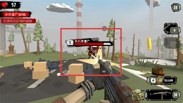 4、在战斗过程中,使用枪械对僵尸发起攻击,要留意僵尸的血量条,保持持续射击的状态,直到将僵尸彻底消灭(比如灭斧男僵尸),以此达成“杀死僵尸”的任务目标。