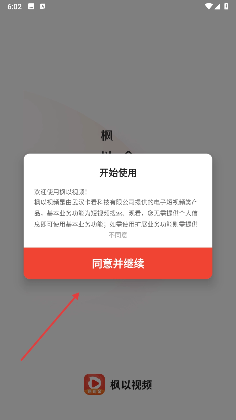 1、第一次使用该软件时,界面会弹出【开始使用】的提示窗口,需点击【同意并继续】按钮,才能进入软件进行后续操作。