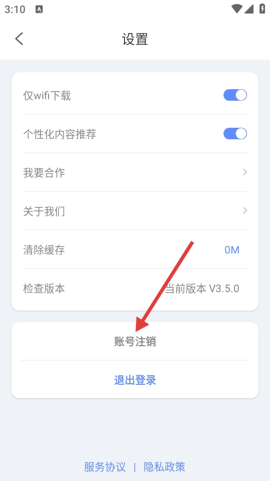 2、在设置界面,点击【账号注销】选项,可进入账号注销说明页。