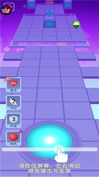4、操作简单、一键式上手,只需左右移动小球避开障碍物、陷进等不要松手。