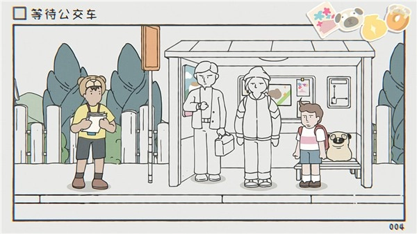 这款游戏打破了传统解谜游戏的固有框架,把“无目的的等待”设定为核心玩法。玩家要在公交站台、教室、雨夜等不同场景里,一方面留意环境中的细微之处,像随风飘落的树叶、车窗上滑落的雨滴;另一方面也可以主动触发一些行为,比如踢路边的罐子、进行抽卡操作,通过这些方式去挖掘隐藏在背后的故事脉络,进而对“时间是如何流逝的”这一问题产生思考。
