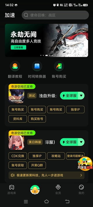 在本站我独自升级正版游戏,游戏需要用加速器才能启动,你可以打开奇游加速器,找到对应的游戏后,点击右侧的加速按钮就行。