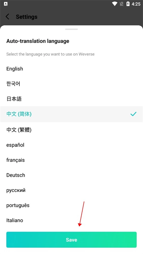然后选择简体中文,点击保存。