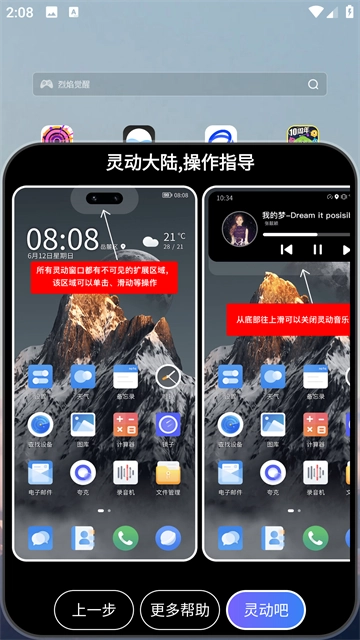 查看下方的灵动大陆操作指南,完成后点击“灵动吧”按钮,即可开启灵动岛的体验之旅。