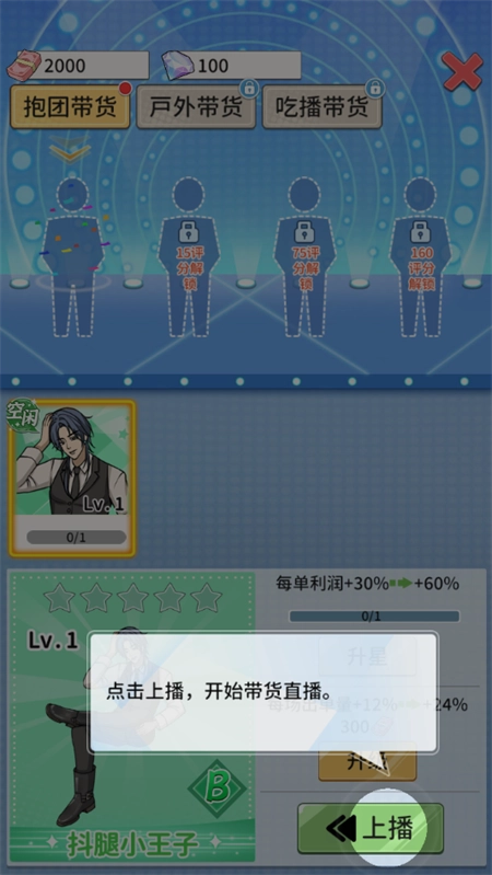 打开游戏,我们需要根据系统提示进行主播安排操作。