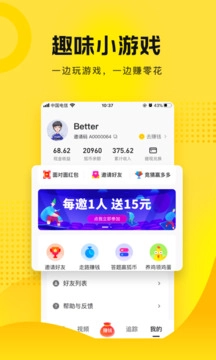 丰富的任务中心,阅读,看推送,分享都能获得狐币!邀请好友一起玩让你收益不停,赚到手软!新用户1元即可提现,狐币秒变人民币!