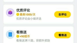 完成日常任务、进行阅读、浏览推送、分享平台内容或是发表评论,都有机会获取狐币;而邀请好友加入,还能直接拿到现金奖励。