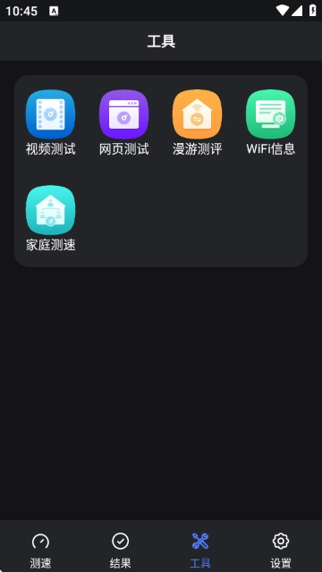 点击底部的“工具”标签,就能使用“视频测试”“网页测试”“漫游测评”“WiFi信息”“家庭测速”等拓展功能,以此进一步检测网络在视频播放、网页浏览等场景下的表现,或者查看WiFi的详细信息。